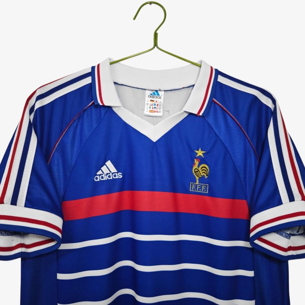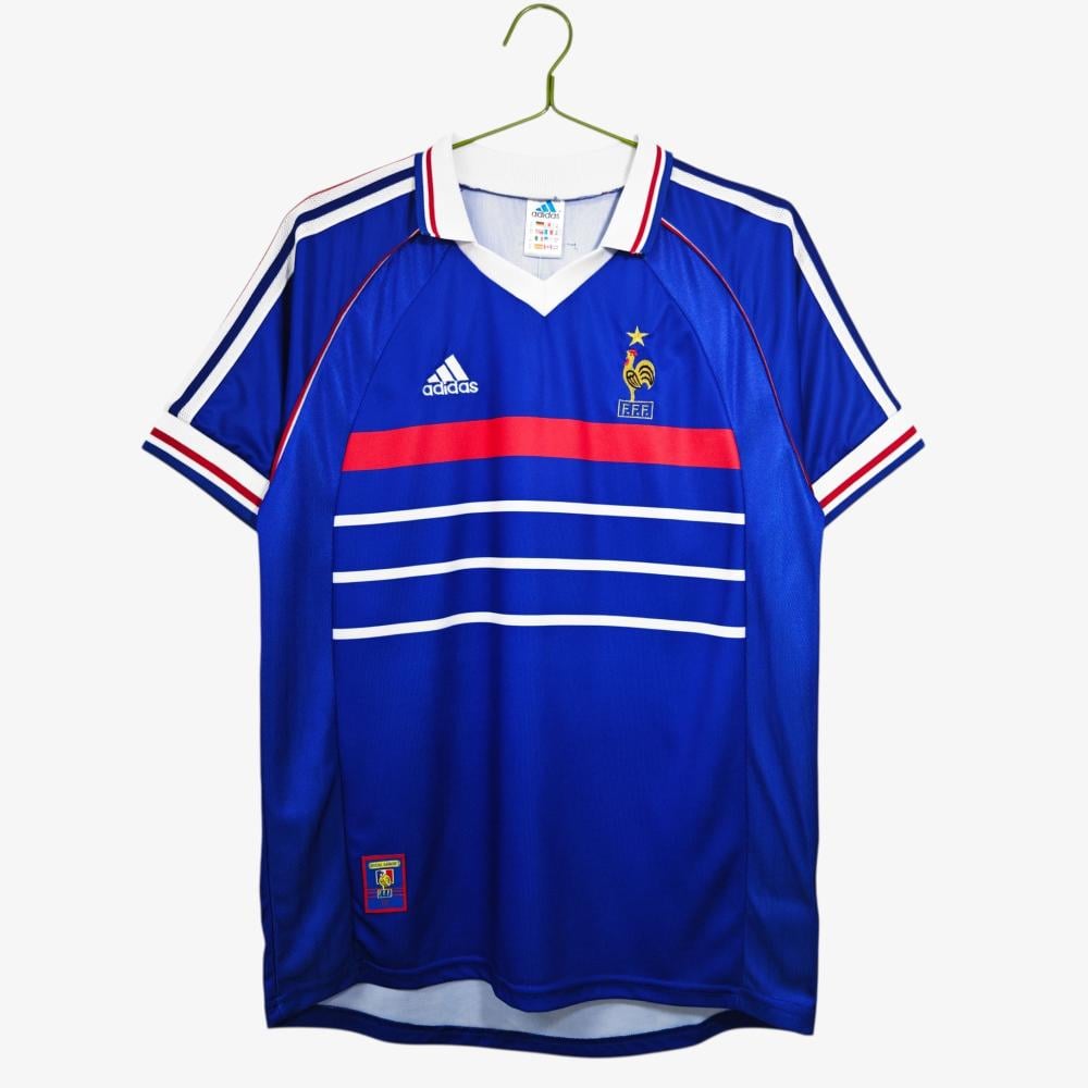 Worn by icons such as Zinedine Zidane and Didier Deschamps, this classic Adidas design showcases the FFF crest with a golden star, celebrating their first-ever World Cup victory.