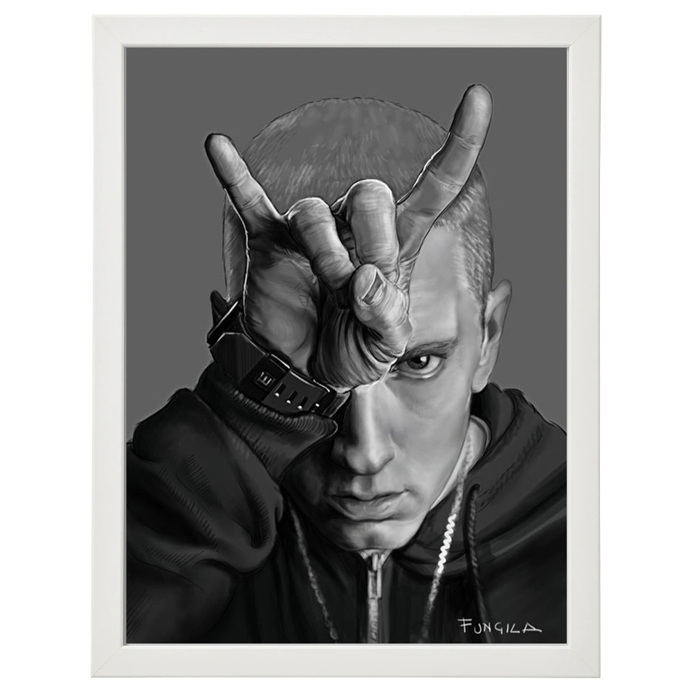 Eminem poster, Eminem memorabilia framed artwork, Eminem fan poster, collectible Eminem poster, limited edition Eminem print, framed Eminem merchandise, exclusive Eminem wall art.