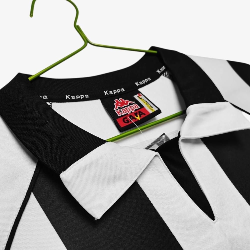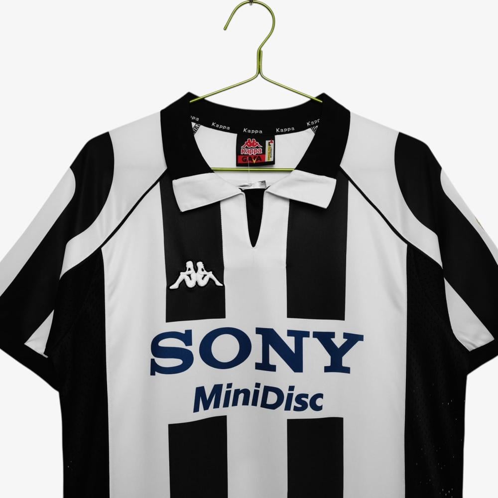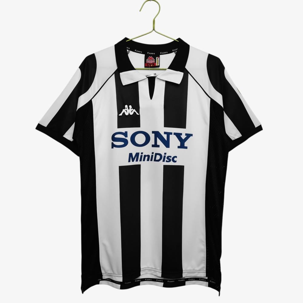 With its traditional black and white vertical stripes, bold Sony MiniDisc sponsor, and the elegant Kappa logo, this shirt is a timeless tribute to the era of Alessandro Del Piero, Zinedine Zidane, and Edgar Davids.